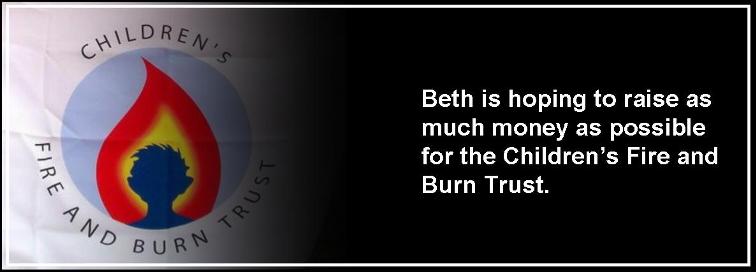 THE CHILDREN'S FIRE AND BURNS TRUST All donations are to be given to the Children’s Fire and Burns Trust. The Trust assists in educational work aimed at reducing the number of injuries that occur as well as helping children both in the United Kingdom and internationally to receive skin grafts and cosmetic treatment for disfiguring burn injuries together with associated support for families. Link to website www.childrensfireandburntrust.org.uk. You can help by sponsoring a mile (or more) of Beth’s journey using the link button to her Just Giving website below. Please help if you can as every donation will mean a lot to these children. |